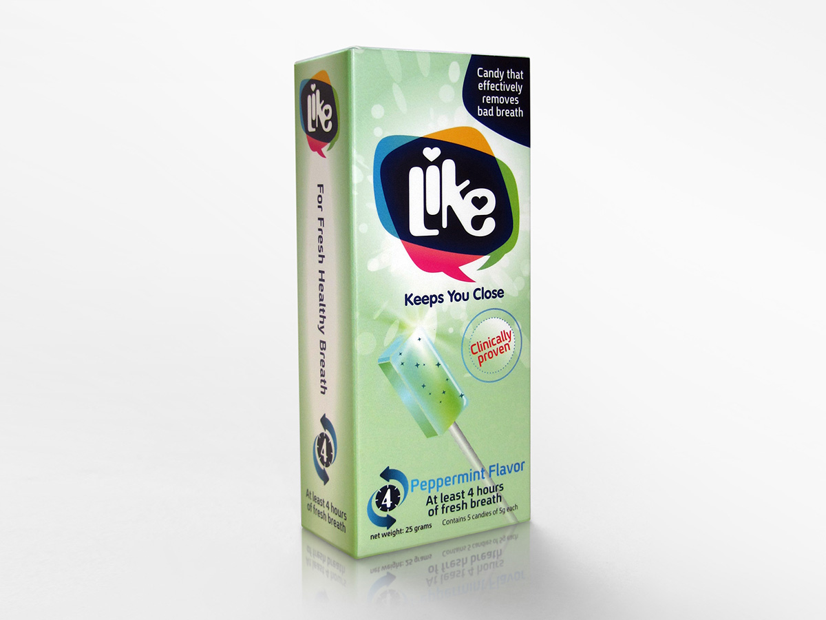 This project was about taking an ‘over-the-counter’ breath freshener in the form of a candy and marketing it in a fresh and apealing candy box, while keeping a professional look and feel to it, Following the logo design, a clean but colorful graphic language was applied to form this eye-catching and joyful package design.